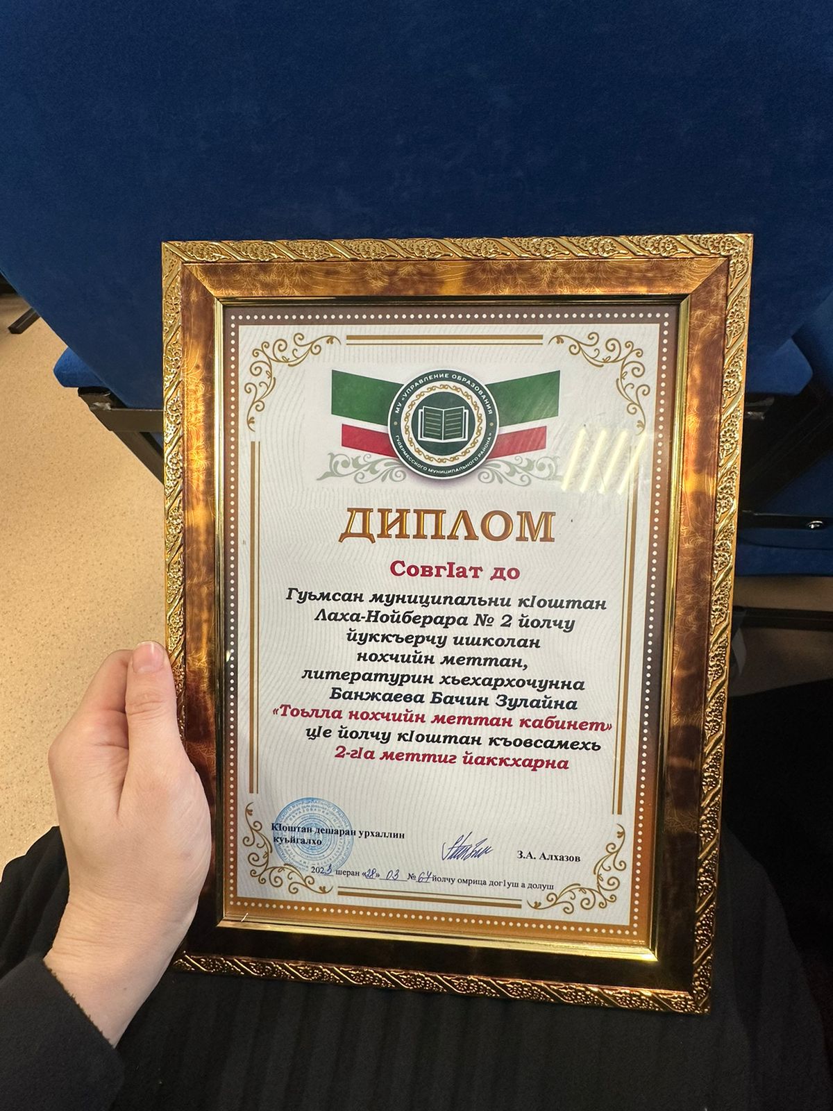 На районном конкурсе "Тоьлла нохчийн меттан кабинет" учительница из нашей школы Банжаева Зулай Бачиновна заняла 2 место.