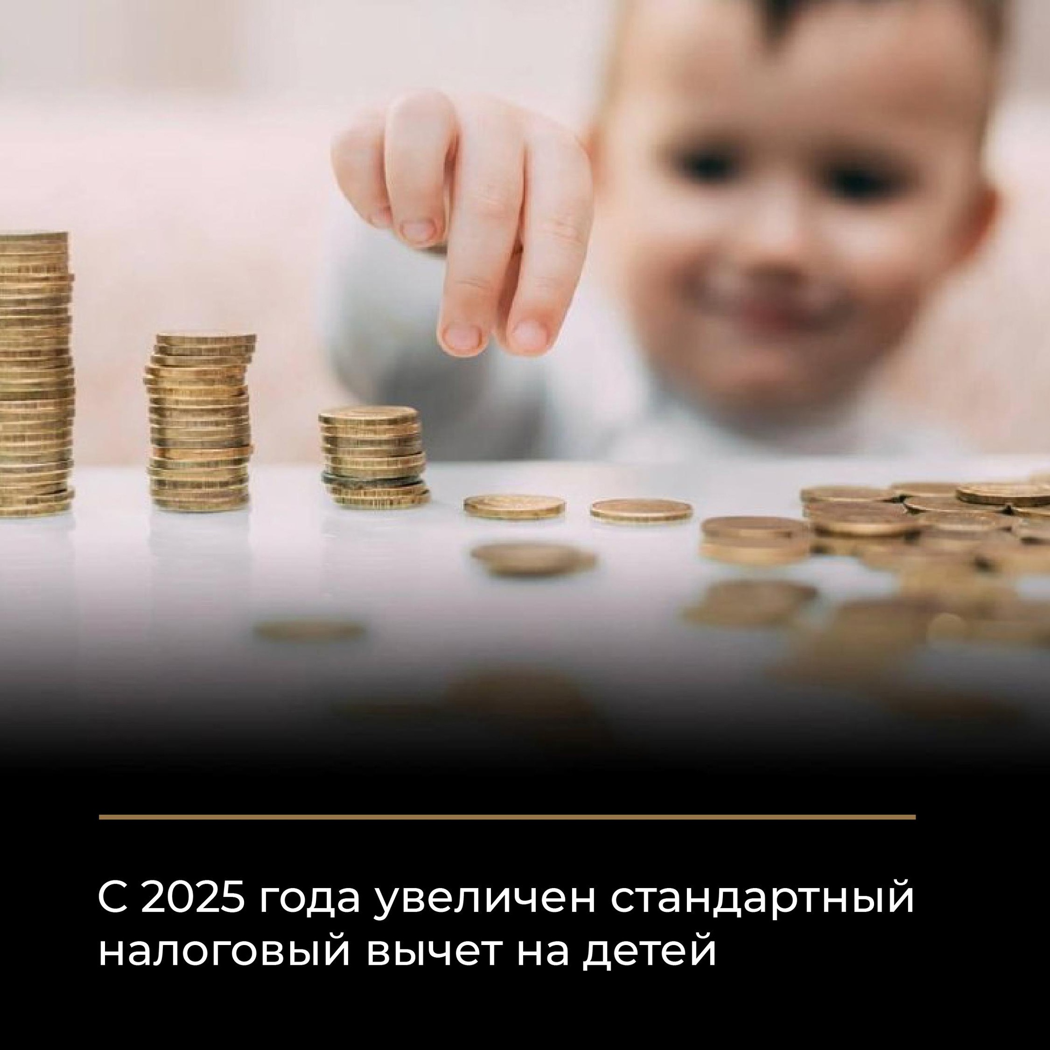 15.01.2025Это льгота, позволяющая вернуть часть налогов, уплаченных государству. Чаще всего это возврат при покупке квартиры, расходах на лечение, обучение или спорт. Получить налоговый вычет может любой гражданин РФ, платящий НДФЛ. Размер налоговых вычетов на детей в 2025 году.Стандартный налоговый вычет на второго ребенка увеличился с 1400 до 2800 рублей, на третьего и каждого последующего – с 3000 до 6000 рублей. Вычет на первого ребенка остался 1400 рублей.Вычет для опекунов, попечителей и приемных родителей на ребенка-инвалида увеличен с 6000 до 12000 рублей. Эта мера также касается студентов до 24 лет с инвалидностью.Нормы для единственных родителей остаются в удвоенном размере:- на второго ребенка – 5600 рублей в месяц,- на третьего и последующих – 12000 рублей,- на ребенка-инвалида – 24000 рублей.Предельный доход для получения налоговых вычетов увеличен с 350 тыс. до 450 тыс. рублей.Где можно получить вычетыСтандартный налоговый вычет на детей предоставляется работодателем автоматически при наличии необходимых сведений, без подачи заявления. При первом получении вычета нужно предоставить документы, подтверждающие право на него.